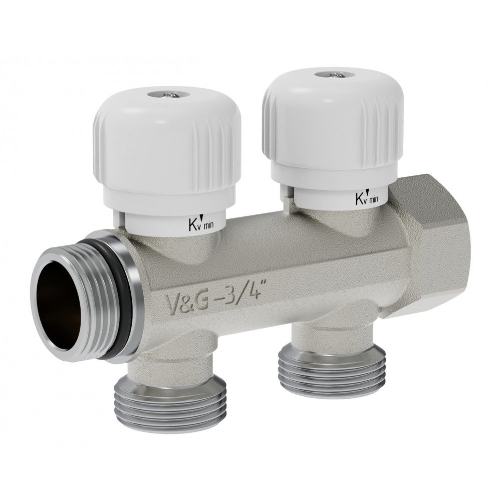 Коллектор регулирующий 3/4″ х 3/4″ евроконус 2 выхода VALOGIN (упак.12шт) / VG-901101/