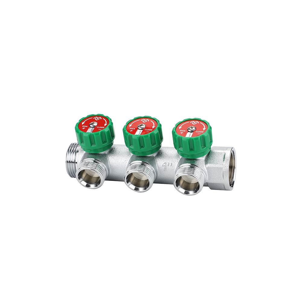Распределительный коллектор с размером основной магистрали 1" и три выхода с наружной резьбой 3/4".