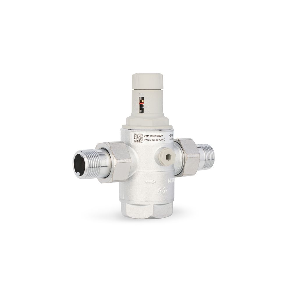 Редуктор давления мембранный 3/4″ Varmega PN25 с разъемными соединениями /VM12902/ предназначен для регулируемого понижения и стабилизации давления рабочей среды с учетом предварительного заданного значения на трубопроводах холодного и горячего водоснабжения, а также в технологических сетях, транспортирующих жидкости, не агрессивные к материалам редуктора.