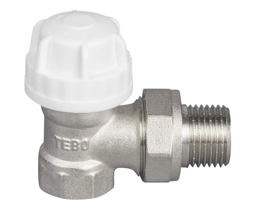 Клапан термостатический TEBO technics угловой вн/нар 1/2" с колпачком М30х1,5 для подключения радиаторов к трубопроводам системы отопления. Наличие полусгонов позволяет монтировать и демонтировать клапаны без демонтажа трубопровода.