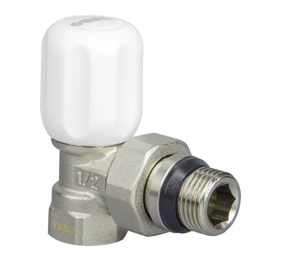 Вентиль ручной простой угловой вн/нар 1/2″ TEBO с уплотнительным кольцом предназначен для плавного ручного регулирования и перекрытия потока теплоносителя, проходящего через отопительные приборы в водяных системах отопления. Самоуплотняющаяся конструкция позволяет отказаться от использования при монтаже дополнительного уплотнительного материала. Наличие полусгона позволяет монтировать и демонтировать вентиль без демонтажа трубопровода.