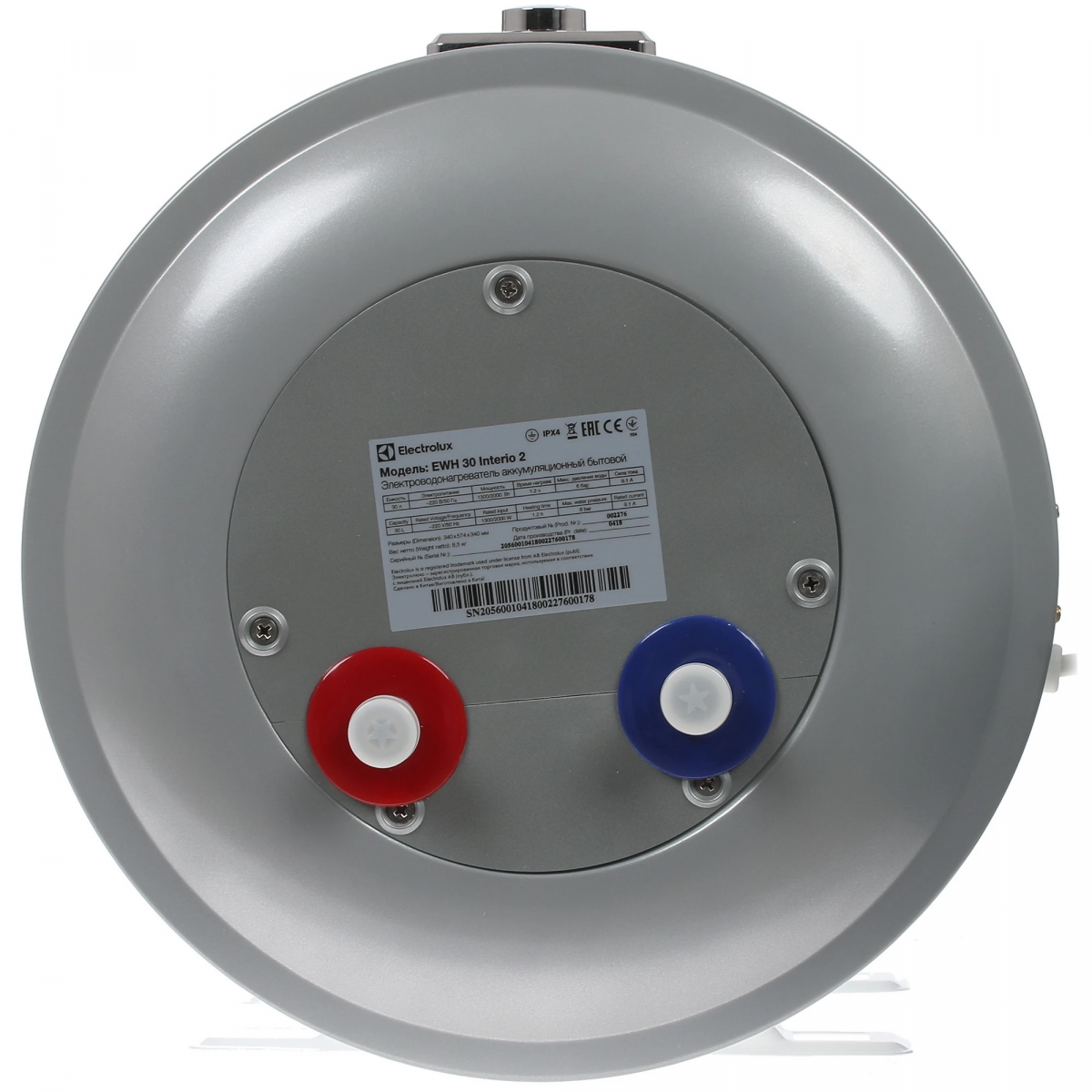 Водонагреватель ELECTROLUX EWH INTERIO 2 30л (2 кВт нерж. бак круглый, универ. монтаж LED-дисплей)